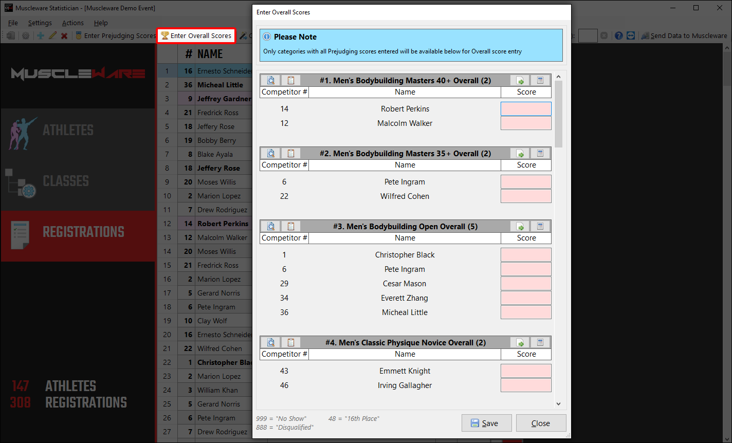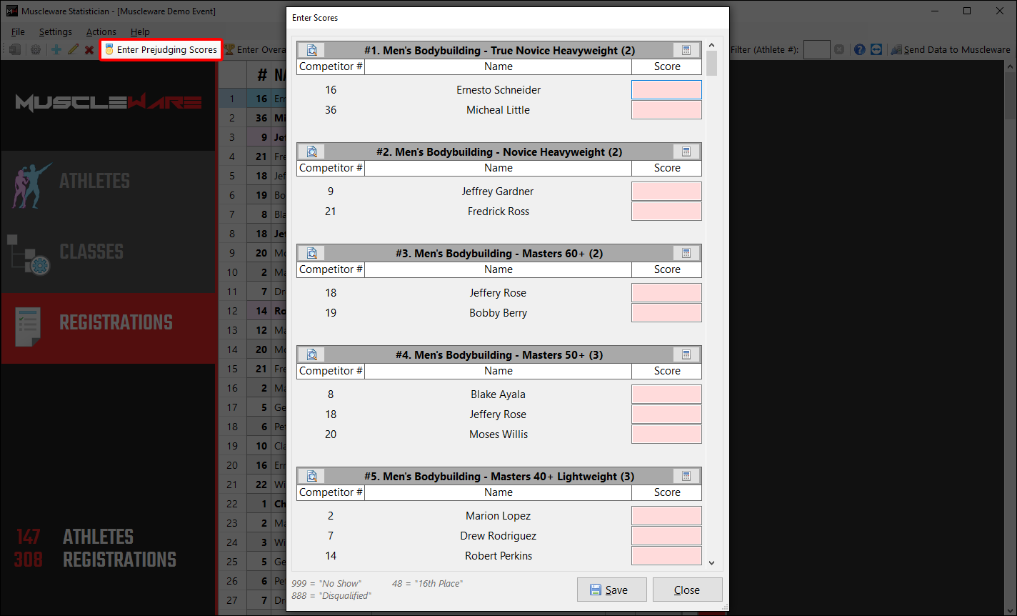 This documentation has been written to go through the various features of Muscleware Statistician, in the order the features are used at a typical event, from Athlete Check-ins to Final Results. Unconventional Show Formats are also supported (after reviewing Sections 1 through 6, see Section 7.1 below for more information).