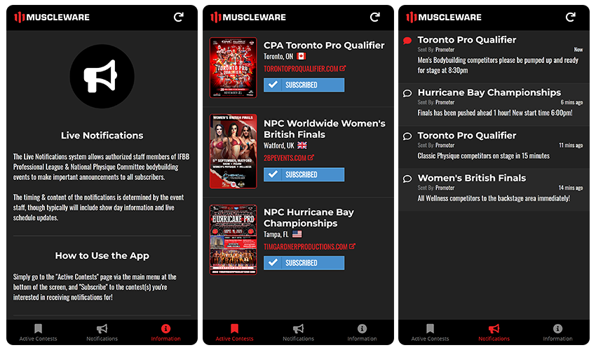 From small entry-level regional shows to major national and international IFBB Professional League pro-qualifying events, Muscleware provides all tools necessary to allow promoters to focus on what they are primarily concerned with... Promoting!