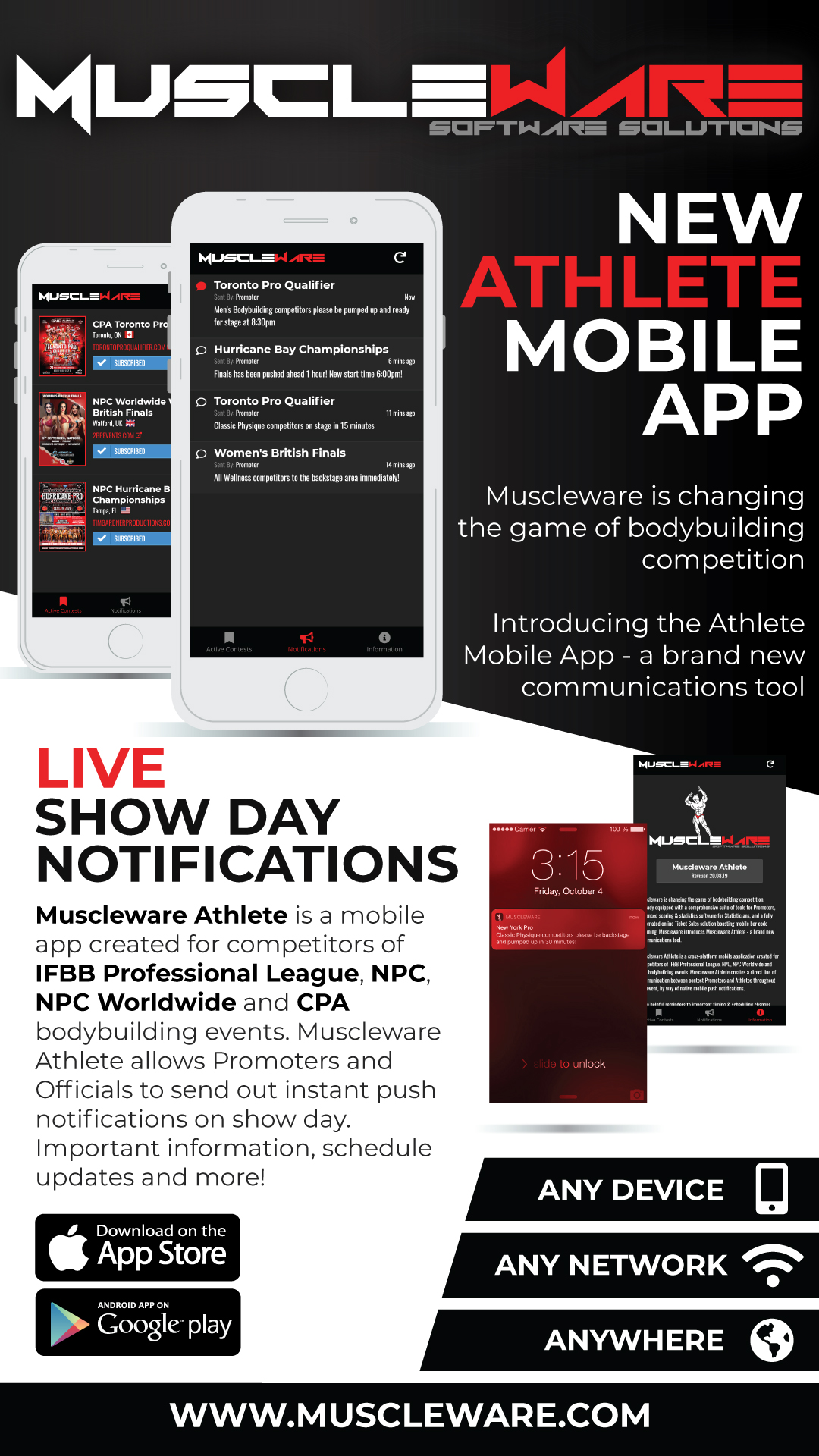 Muscleware Statistician software is used to generate show-day documents, including an