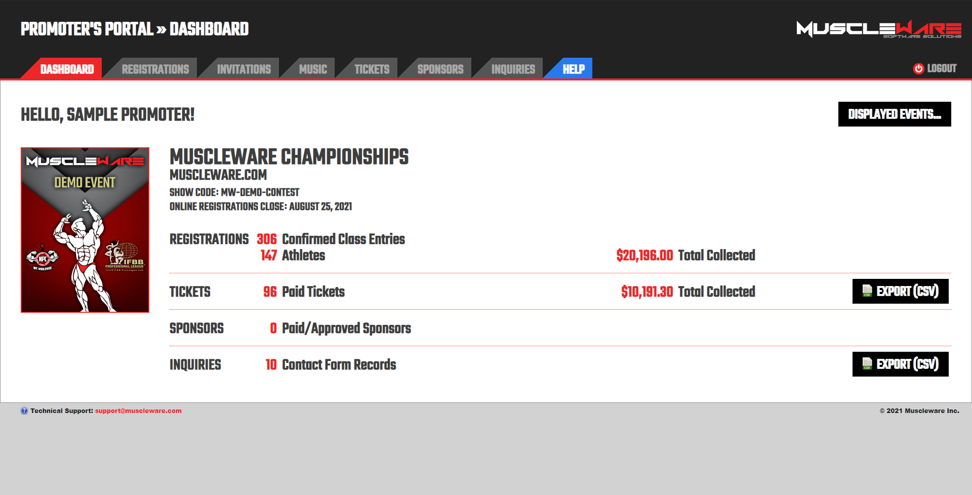 The Muscleware Event Setup Form will change and adapt over time as required to satisfy IFBB Professional League, NPC/NPC Worldwide and CPA rules & regulations.