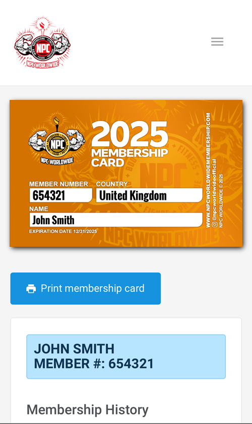As mentioned above, all Athletes need to do to obtain an NPC Worldwide Member Number is create an NPC Worldwide account. The Athlete's NPC Worldwide Member Number is clearly displayed in the screen above. It is mandatory to record this Member Number on the Athlete Check-in Sheet, so the Statistician can enter it into the Event File.