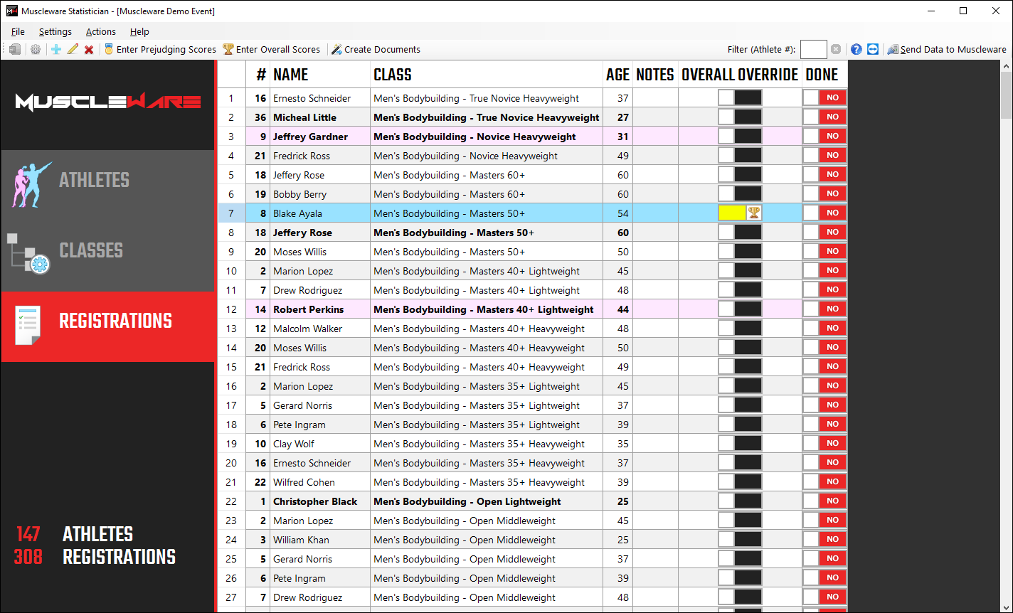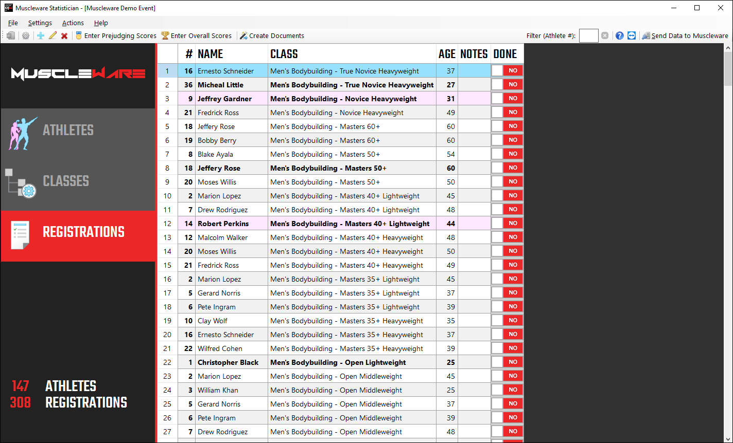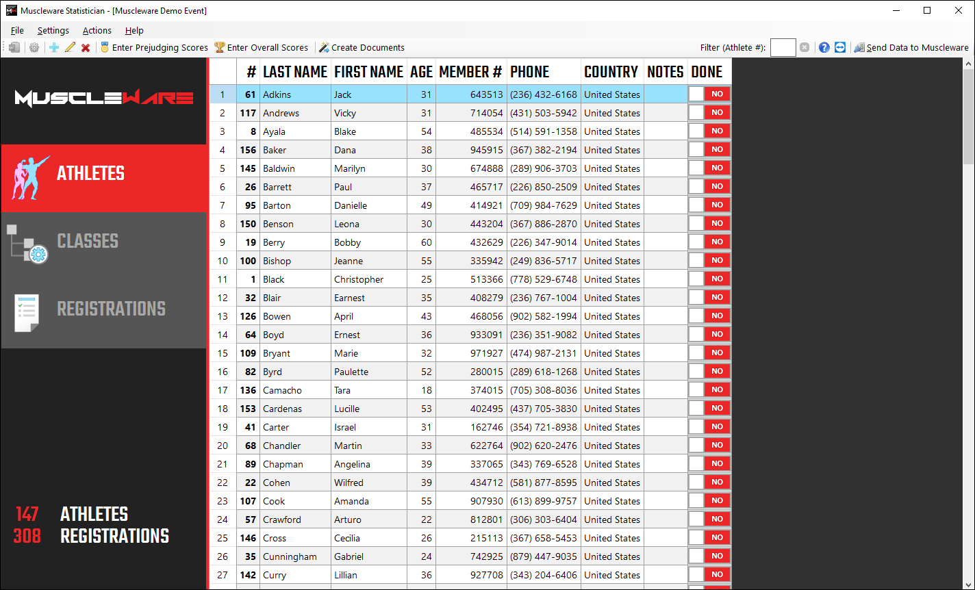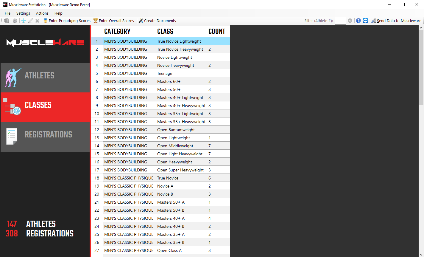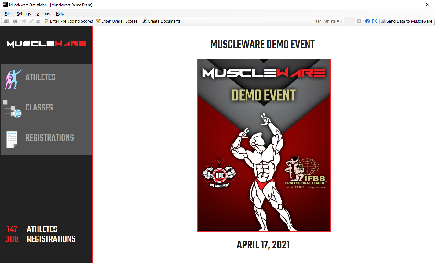 This documentation has been written to go through the various features of Muscleware Statistician, in the order the features are used at a typical event, from Athlete Check-ins to Final Results. Unconventional Show Formats are also supported (after reviewing Sections 1 through 6, see Section 7.1 below for more information).