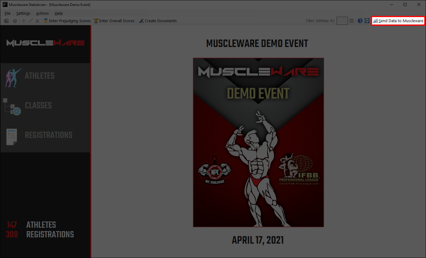 New "Send Data to Muscleware" button makes the process of uploading Event data a "1 click" process.
